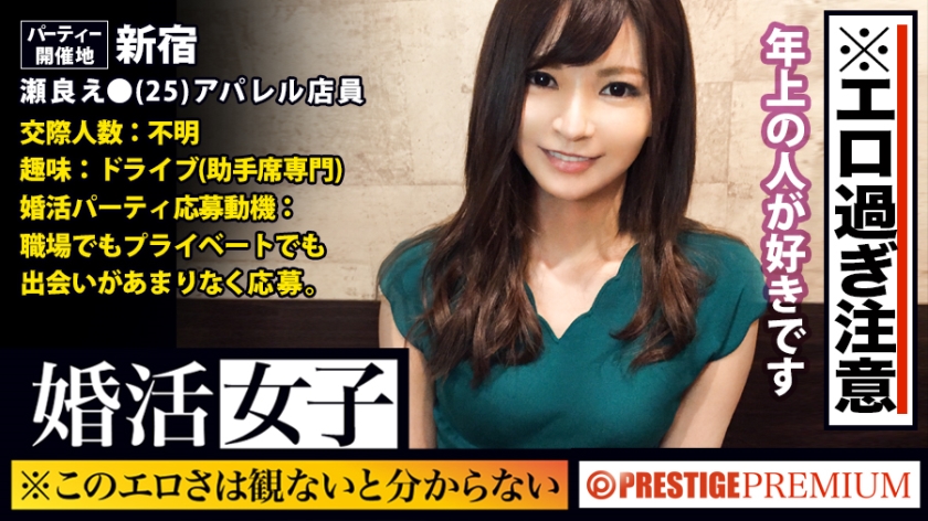 ■■この作品は、婚活パーティに潜入し出会いを求める女をひっかけ素人のリアルSEXを撮影する企画です■■◆本日の婚活報告①プロを高スペックの素人男性に仕立て上げ個室型婚活パーティーへと送り込む!!②お互いのプロフを確認しながら短い時間のおしゃべりタイムでいけそうな女性を見繕う。今回のターゲットは瀬良えまさん(25歳)。アパレル店員らしく同業者ということで話が弾んだ方です!顔立ちハッキリの美人さんで可愛らしい話し方が特徴的!③軽く食事をしながら、仕事の話をしながら和んできたところで恋愛話。前回の彼氏はプロと同じ年だったらしく、どうやら年上がタイプのよう!もしやこれはばっちり相手の好みに合ったのでは?と期待しながら、次に行く場所を尋ねるとえまさんのほうから「2人になれるところ…」ときた!!④今回もすんなりいけたな…と不敵な笑みを浮かべながらホテルへ到着。軽めのフレンチキスから始まり、舌を絡ませた濃厚ディープキスでえまさんの唇をたっぷり堪能。下着を脱がすと、薄毛の綺麗なおま○こにぷっくりと綺麗なおっぱいがお目見え!可愛い声で喘ぎながら全身で感じてるのかピクピク震えがとまらないww■マッチング結果■大人しめかと思いきや、自らホテルに誘ってくるとかとんだエロ女子でしたww